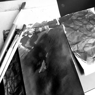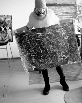 Die weiße Leinwand. Das unbefleckte Blatt Papier. Pinsel, Spachtel, Rakel, weiche und harte Stifte. Alles will bewegt werden. Alles drängt sich nach vorn. Farben, die nach mir rufen, mich anschreien oder ruhig dahin fließen. Manchmal kann ich sie nicht alle bändigen. Manchmal nehmen sie Besitz von mir. Erschrocken weiche ich zurück. Und versuche Ordnung in das Chaos oder Chaos in die Ordnung zu bringen. Immer eine neue Herausforderung.